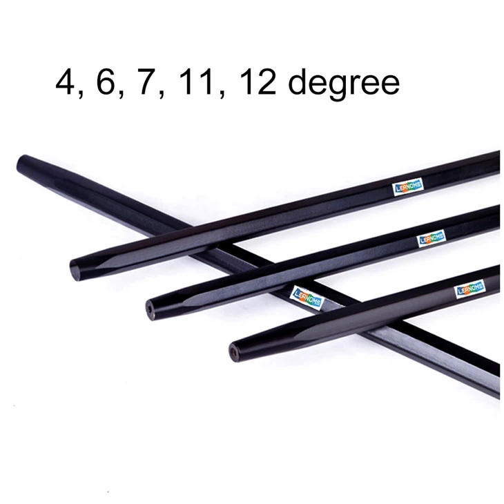 tapered drilling toolsDifferent rock formations and rock drills require different cone angle tapered drill rods. When using high-impact hydraulic rock drills to drill holes in medium-hard to hard abrasive rock formations, the taper angle of the tapered drill rods is relatively wide, usually 11 degrees or 12 degrees. When drilling in low-hard rock, the taper angle of the drill pipe is narrowed, usually 7 degrees.